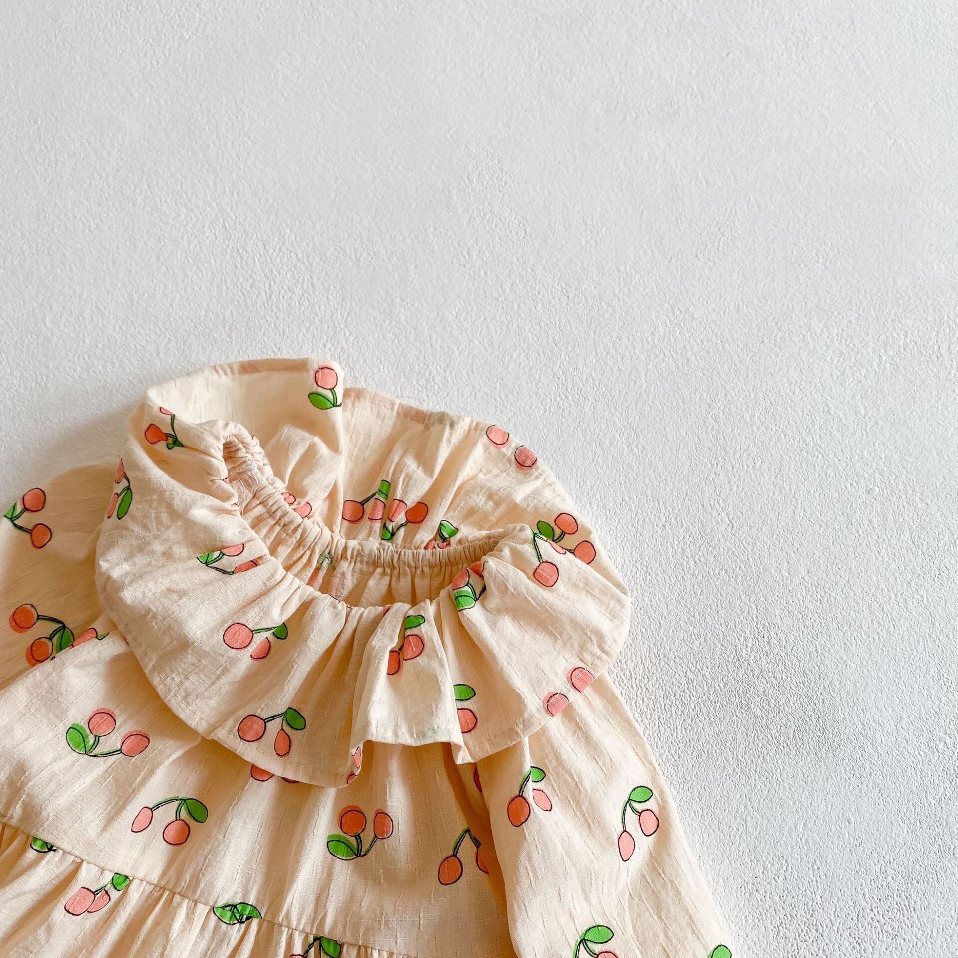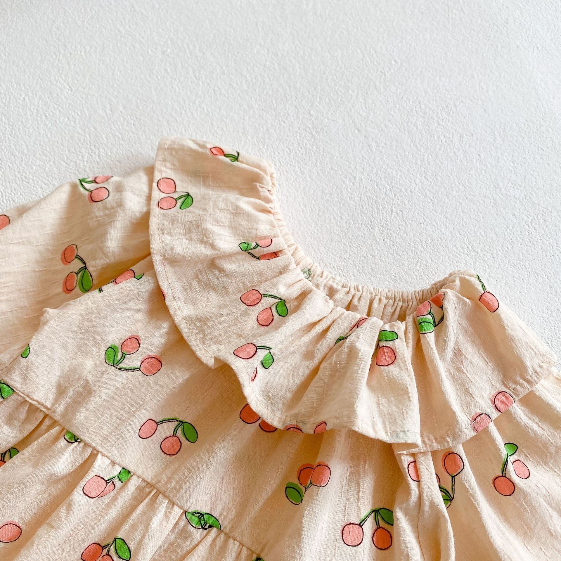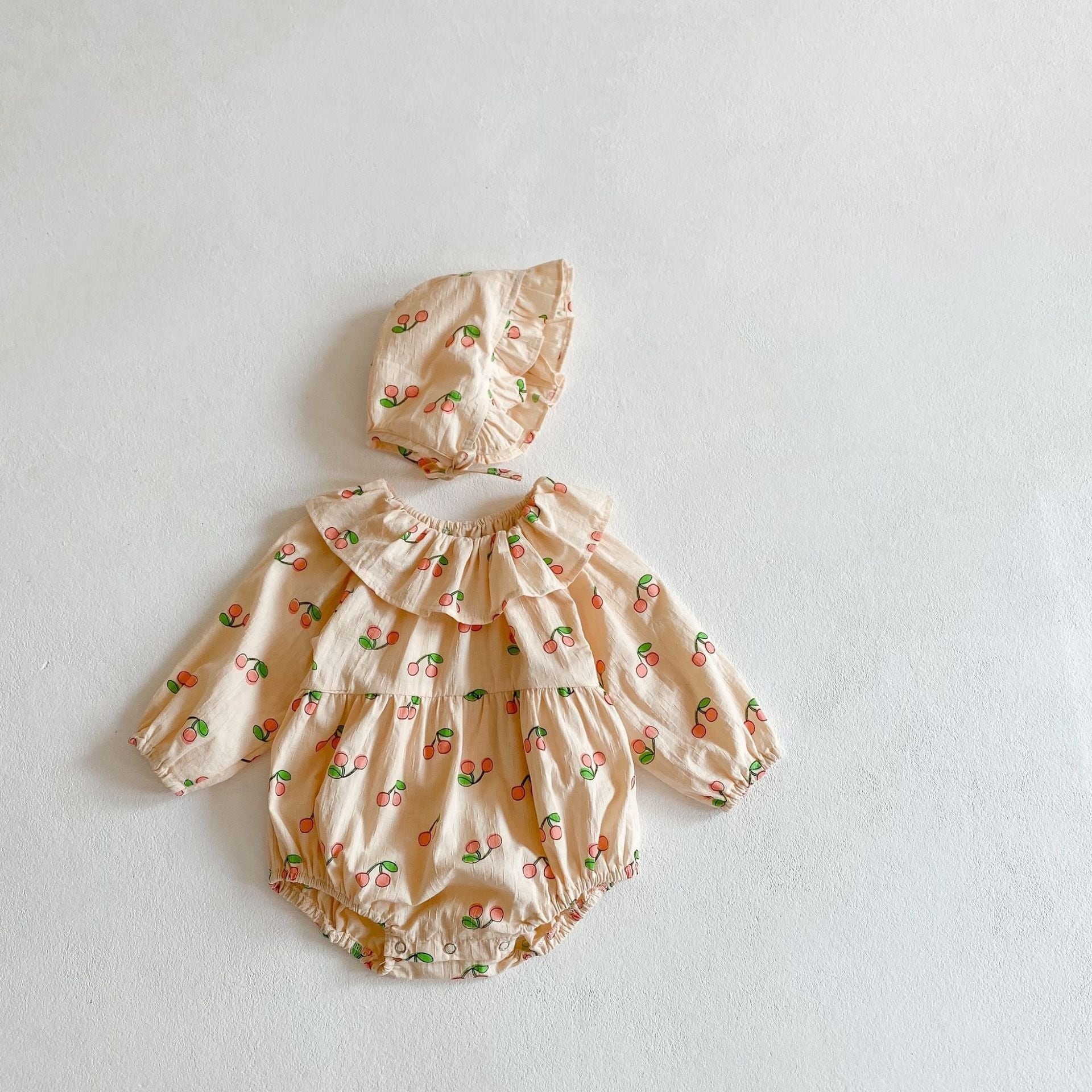 AS1313 チェリープリント ナチュラルロンパース
