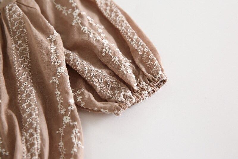 AS1328 ナチュラルコットン 刺繡ロンパース