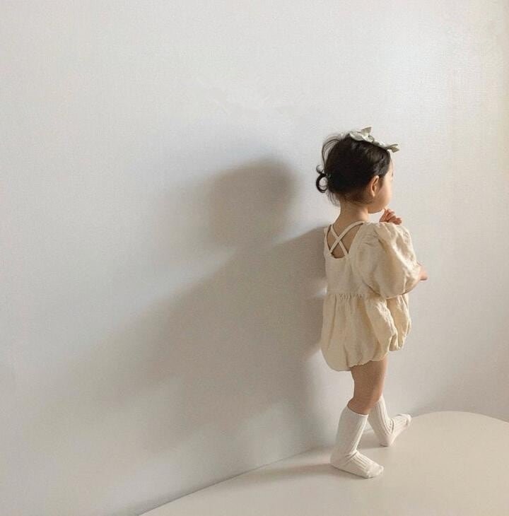 RE0006 ナチュラルコットン バッククロス ロンパース&ワンピース