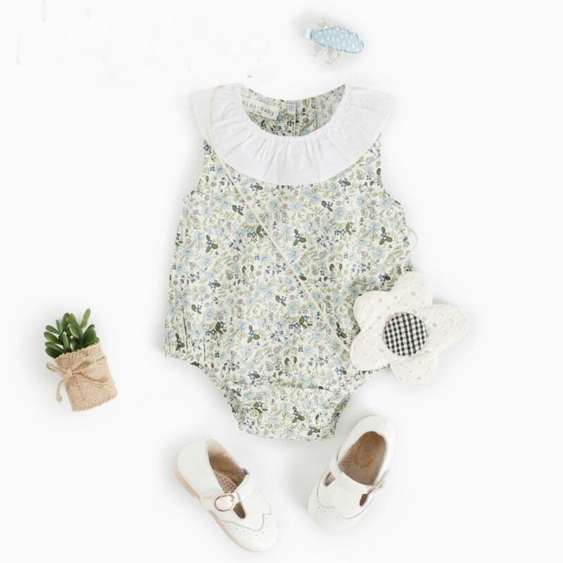 <SS>AS1528 フリル襟付き リバティーロンパース